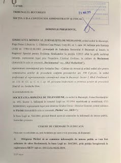 Din acest motiv, SRJ MediaSind şi filiala sa, MediaSind TVR au decis acţionarea în justiţie a conducerii SRTV pentru a obţine informaţiile de interes public solicitate.