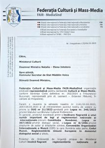 Convenția Internațională privind siguranța și independența jurnaliștilor si a altor profesioniști din media pentru susținerea libertății de exprimare,- Situația Contractului colectiv de muncă din Sectorul Cultură.