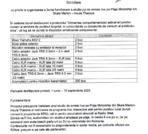 - Documentația care a stat la baza deciziei, inclusiv note de fundamentare și solicitări de aparatură din partea managementului Radio3Net.